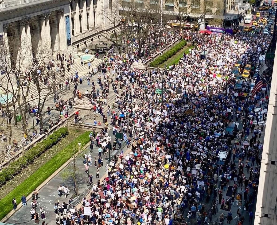 Having attended this past weekend’s demonstration in New York City, standing in the middle of a crowd around the corner from what the photograph above shows, I can attest that it is deflating to see so little of what happened that day reflected in the media. It begins to make it seem as if, despite the thousands of people with whom I was marching through the middle of Manhattan, it was all a mirage.