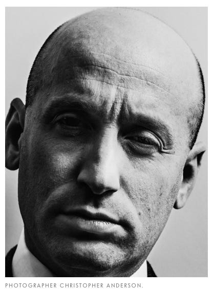 Coming out at the end of a year rife with chaos in visual media, with the emergence of masses of AI-generated imagery and untold numbers of other images of uncertain credibility, Anderson’s photographs, such as the ones of White House Chief of Staff Susie Wiles and Deputy Chief of Staff Stephen Miller (both below), seemed to reaffirm photography as a means of speaking truth to power. Unvarnished, they were seeking an understanding not only of the people portrayed, but of the government they represent that has upended so much of society as we previously knew it.